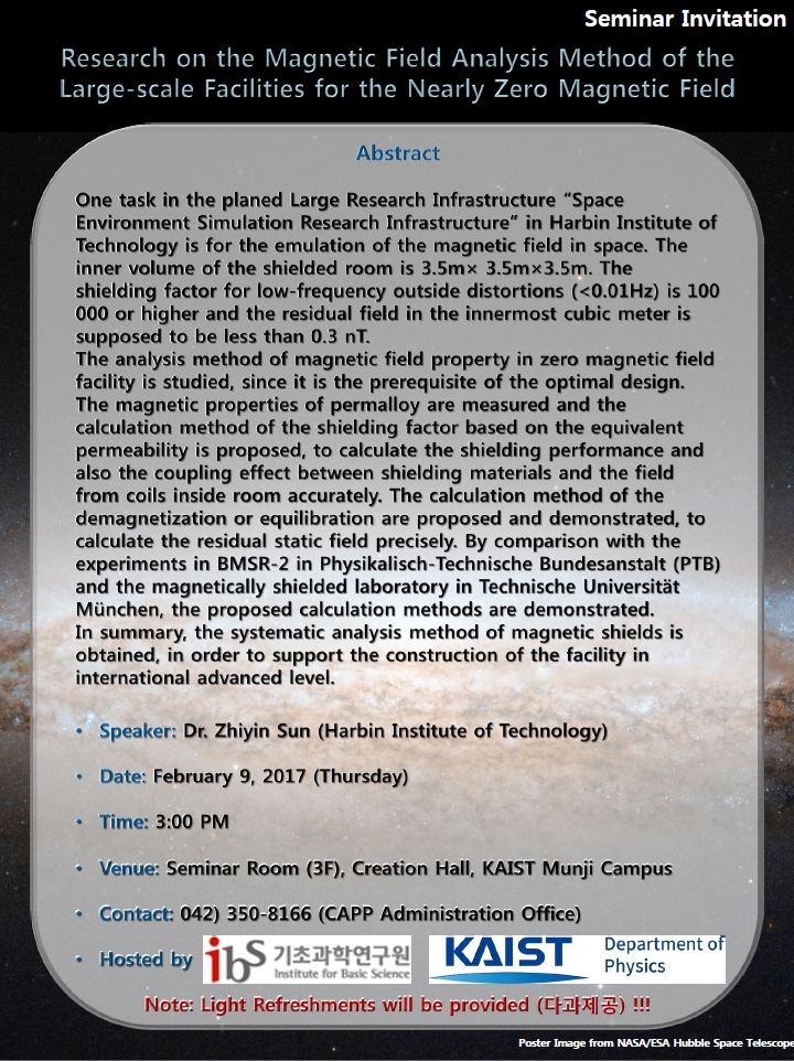[CAPP 세미나] Research on the Magnetic Field Analysis Method of the Large-scale Facilities for the Nearly Zero Magnetic Field - 2017년 2월 5일자로 취소