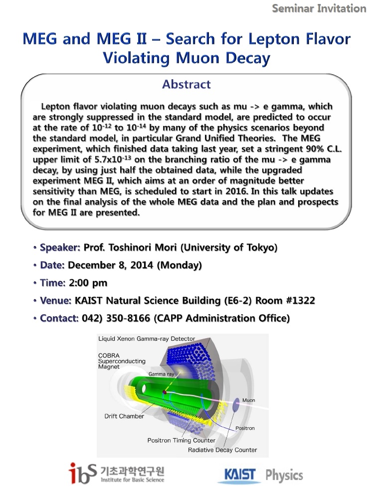 [CAPP 세미나] MEG and MEG II - Search for Lepton Flavor Violating Muon Decay