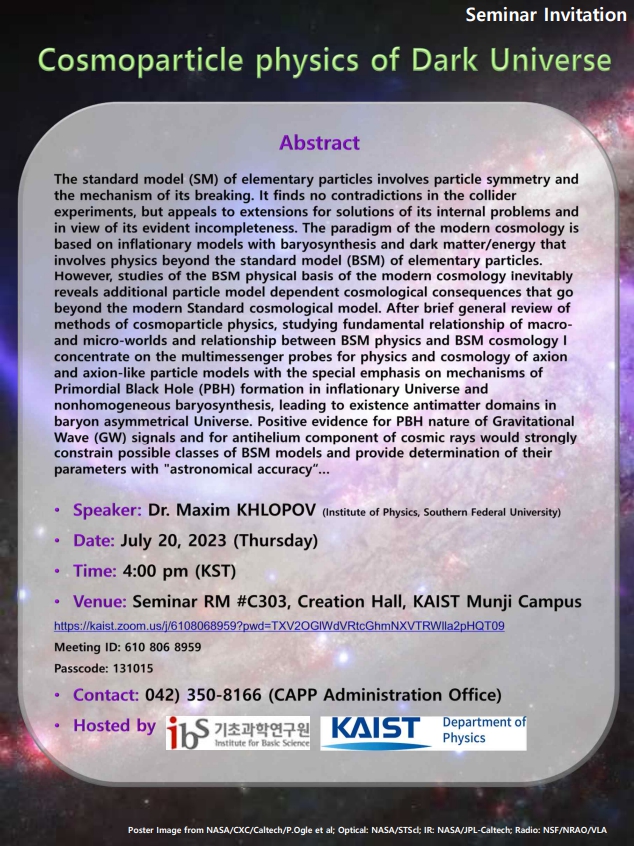 [CAPP Seminar] Cosmoparticle physics of Dark Universe