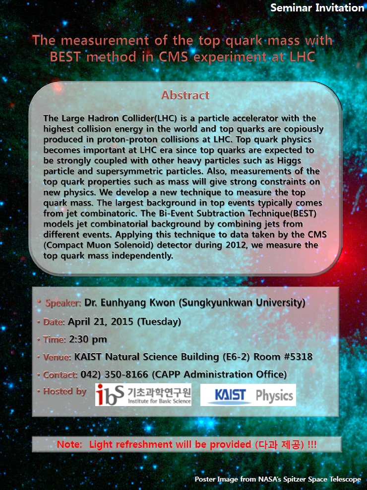 [CAPP Seminar] The measurement of the top quark mass with BEST method in CMS experiment at LHC